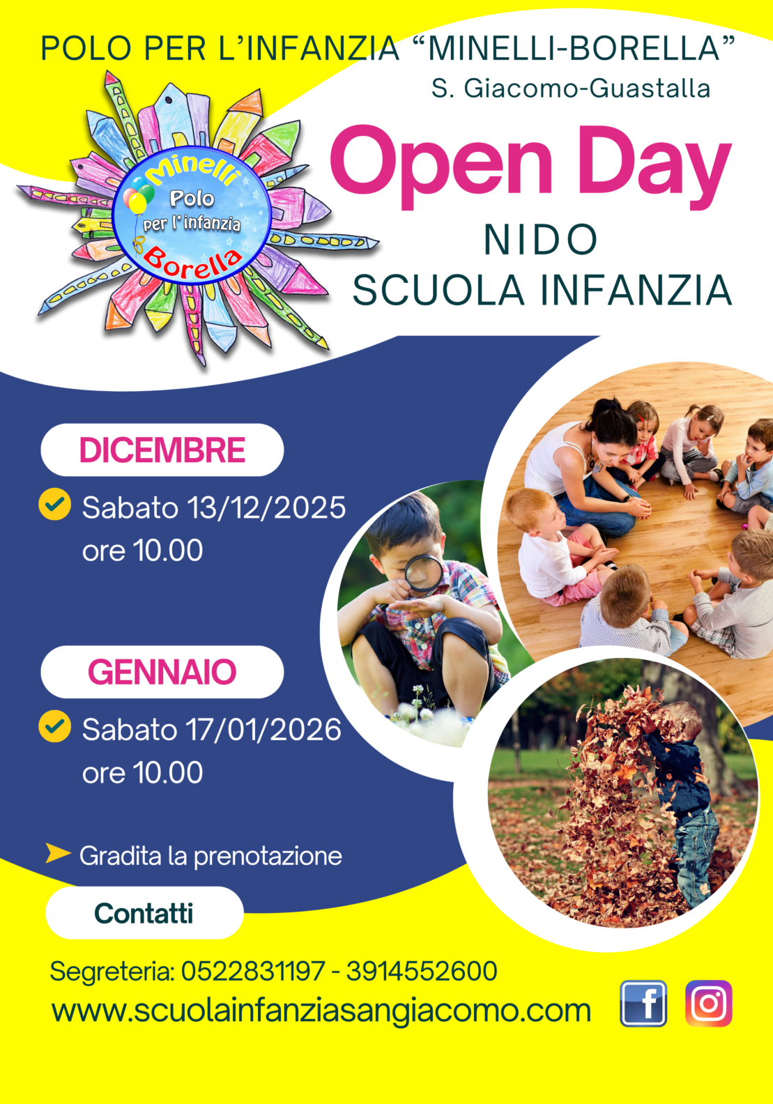 La prenotazione è gradita con un messaggio WhatsApp al numero 3914552600, oppure via mail scuola.minel-borel@libero.it, oppure telefonando al numero 0522-831197.